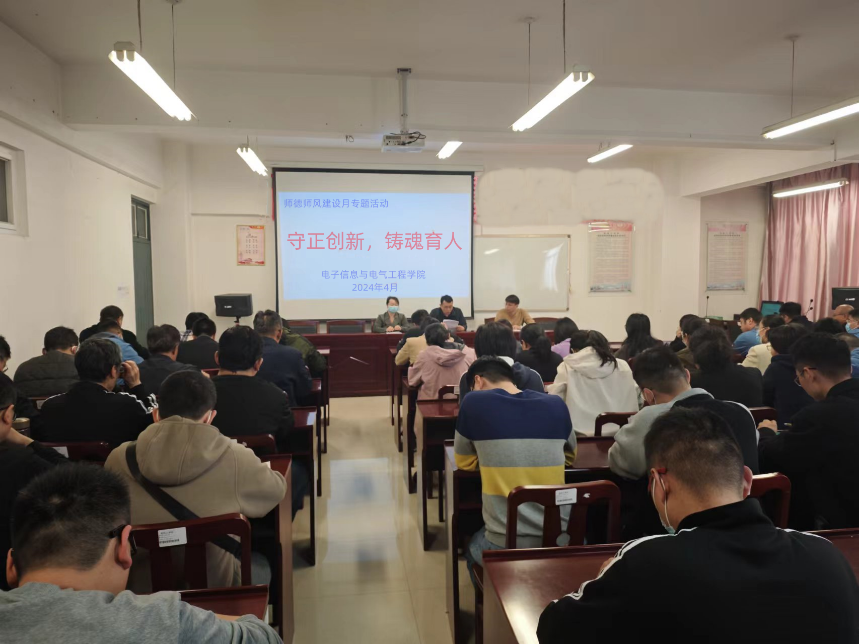 为进一步全面贯彻党的教育方针,强化师德师风建设,4月10日下午,太阳成集团tyc33455cc在A-07 311会议室开展了以“守正创新,铸魂育人”为主题的师德师风建设专题活动启动会。会议由公司党总支书记董昭主持,公司领导班子和全体教师参加。