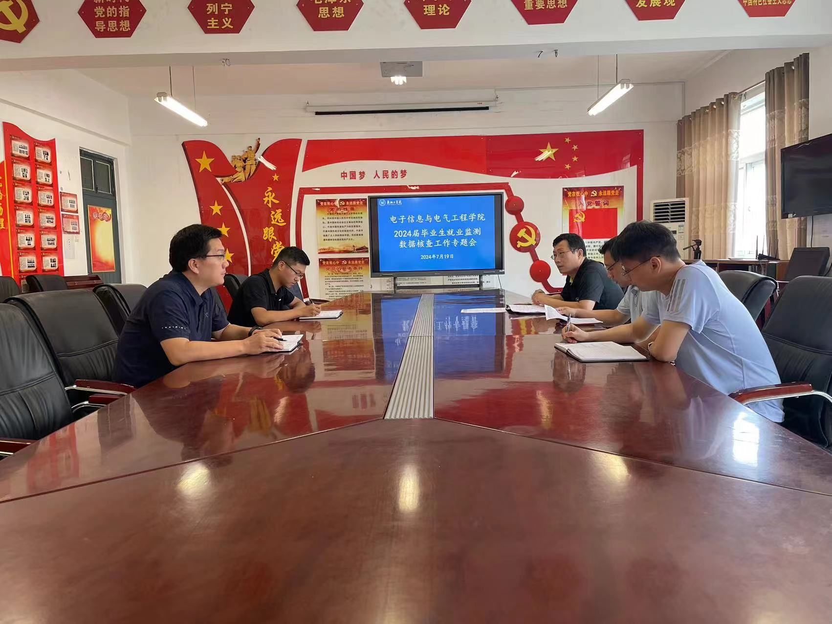 为贯彻落实省教育厅通知要求和qy太阳成集团tyc33455cc2024届毕业生就业监测数据核查工作安排,太阳成集团tyc33455cc高度重视就业监测数据核查工作,于2024年7月19日公司经理董昭组织召开专题会议研究部署就业监测数据核查工作,党总支副书记张涵、副经理李立及相关教研室主任参加本次会议。